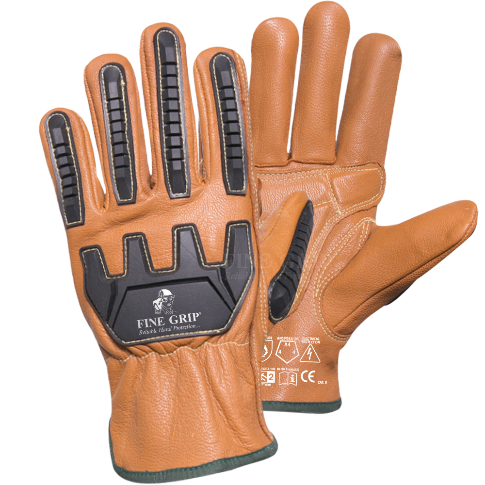 Premium Goatskin has high strength and abrasion-resistant and referred to as natural strongest leather, this drivers-style, goat-grain leather glove is fully lined with Kevlar®+Glass and filament fiber lining cut-level 4,protection, The back of hand and fingers feature impact protection that’s comfortably flexible and supremely durable.