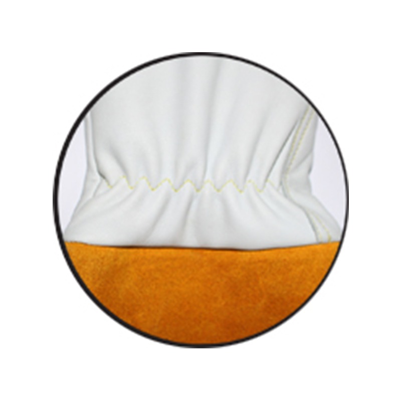 Premium Goatskin Leather have good strength and abrasion resistant and referred to as natural strongest leather. Soft and good thick, our welding-style, goatskin leather glove is full lined Kevlar cut resistance 100% Kevlar® lined gloves, sewn with Kevlar® thread, Golden Cow split Leather Cuff, for arm protection from sparks, Wing thumb for better durability and comfort.