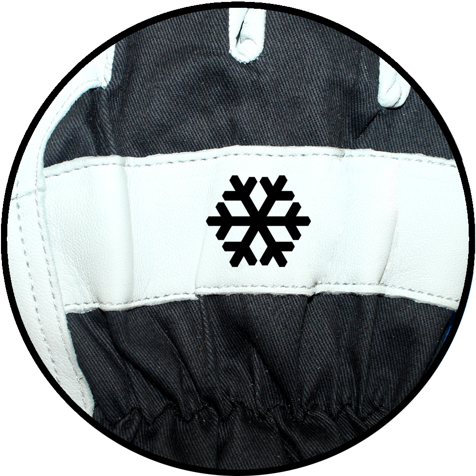 | FINE-1605FL | Palm Goatskin Leather back blue drill, wing thumb, Rubberized safety cuff, inside full fleece lined. |