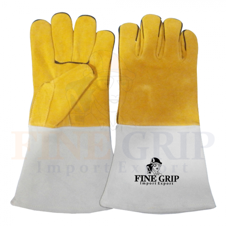 | FINE-974 | Premium Goatskin Tig Welding Gloves,with Cow Split Leather Cuff, Keystone thumb, black piping, 12CM Cow Split Leather Cuff. |