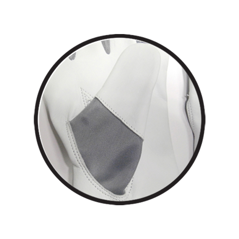 | FINE-1063CO | Palm cowhide Leather, back blue spandex, round elastic, keystone thumb, three fingertips. |